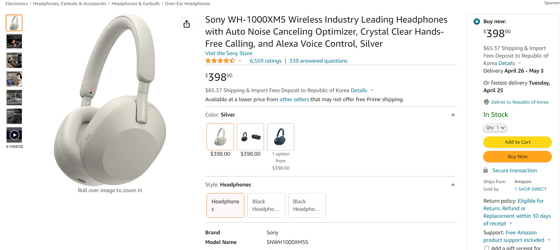 그래서 이번 시간에는 아마존을 기준으로 sony wh 1000 xm5 가격을 추적하여 원하는 가격까지 떨어질 때