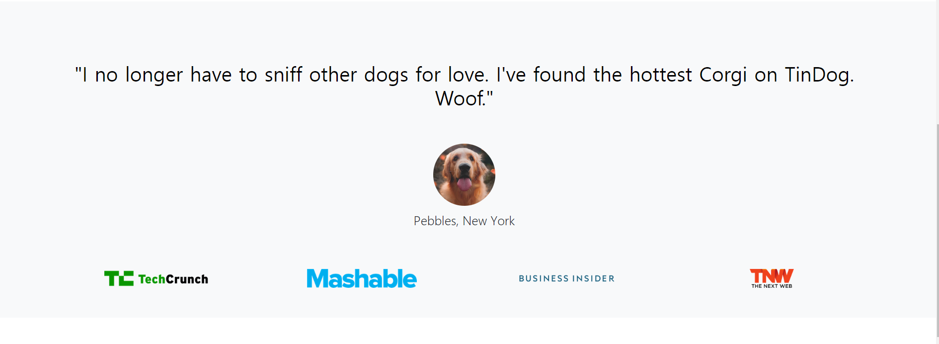 <h2 class="text-body-emphasis">"I no longer have to sniff other dogs for love. I've found the hottest Corgi on TinDog. Woof."</h2>