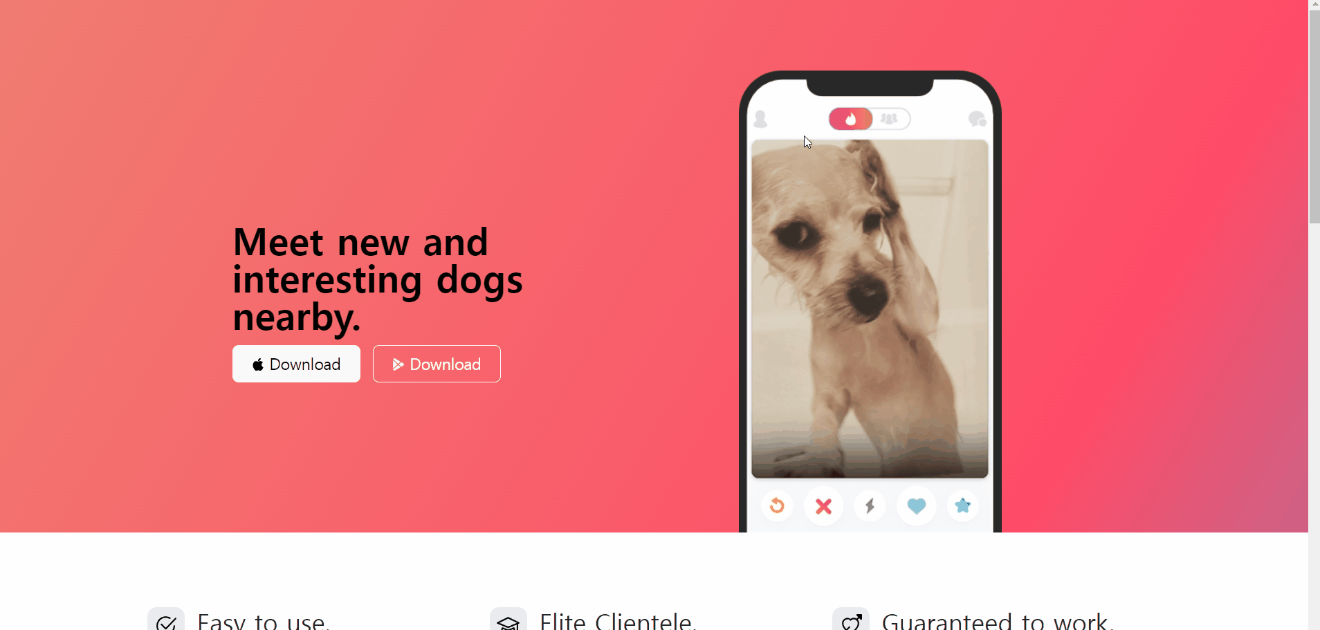 어떤 페이지를 구현해 볼거냐면, Tindog 라는 웹 페이지입니다 !