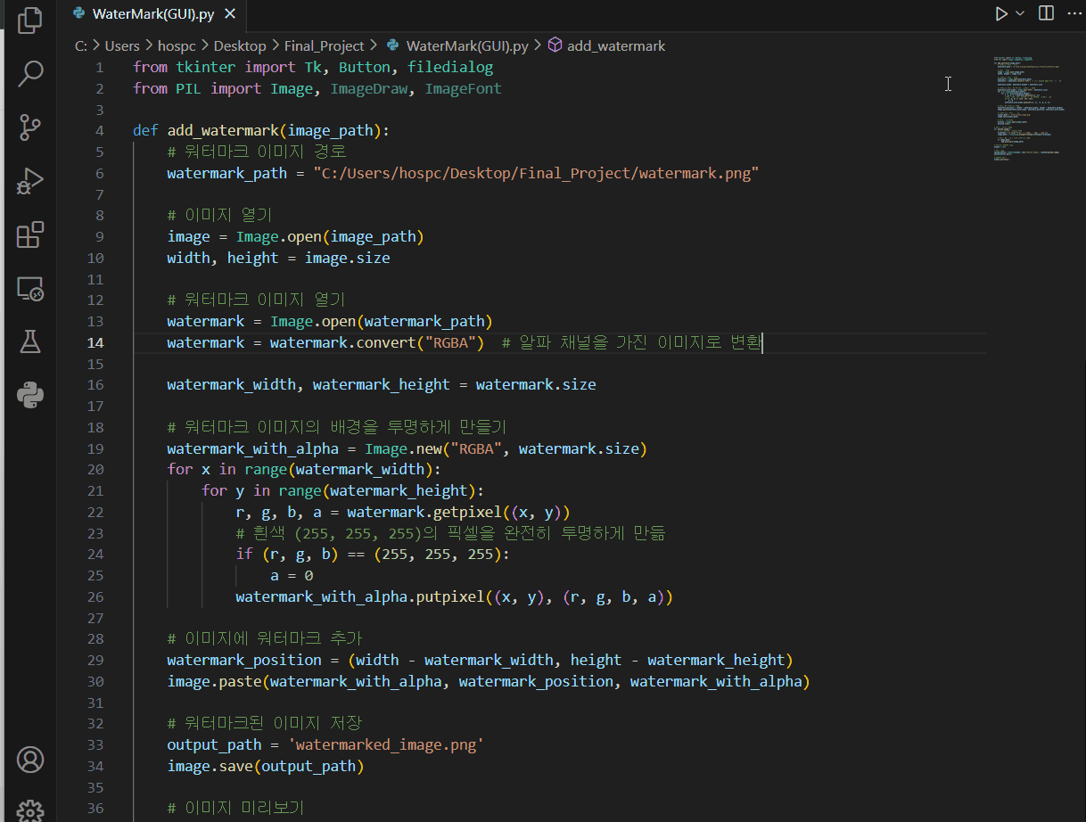 저는 기존 프로그램에서 워터마크에 해당하는 파일의 배경 투명화까지 진행을 했습니다 !