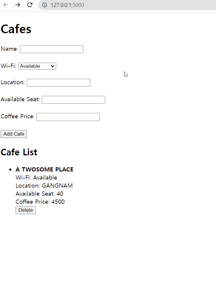 Wi-Fi 여부와, 위치, 이용 가능한 좌석 수, 커피 가격을 추가하고 확인할 수 있습니다 !